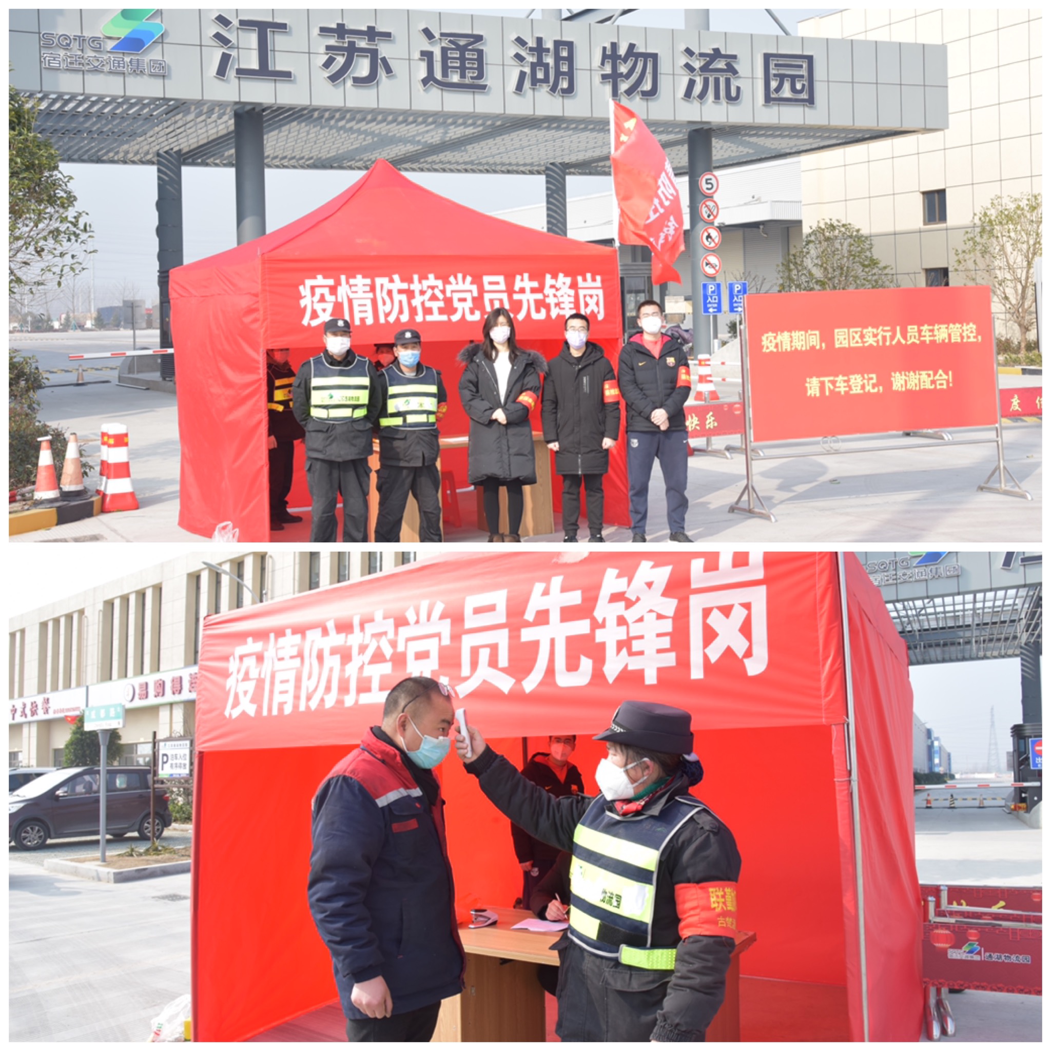 自疫情防控工作開展以來,物流園黨支部充分發(fā)揮基層戰(zhàn)斗堡壘作用,組織帶領(lǐng)黨員堅(jiān)守在抗疫一線。活動(dòng)當(dāng)天,支部全體黨員及公司中層干部分組對(duì)園區(qū)大門、倉儲(chǔ)區(qū)、工程現(xiàn)場(chǎng)進(jìn)行執(zhí)勤和巡查,對(duì)進(jìn)出車輛、人員逐一進(jìn)行登記及體溫監(jiān)測(cè),對(duì)園區(qū)內(nèi)人員及企業(yè)進(jìn)行勸導(dǎo),督促做好消毒、佩戴口罩等自我防護(hù)工作,堅(jiān)決杜絕疫情進(jìn)入園區(qū)。