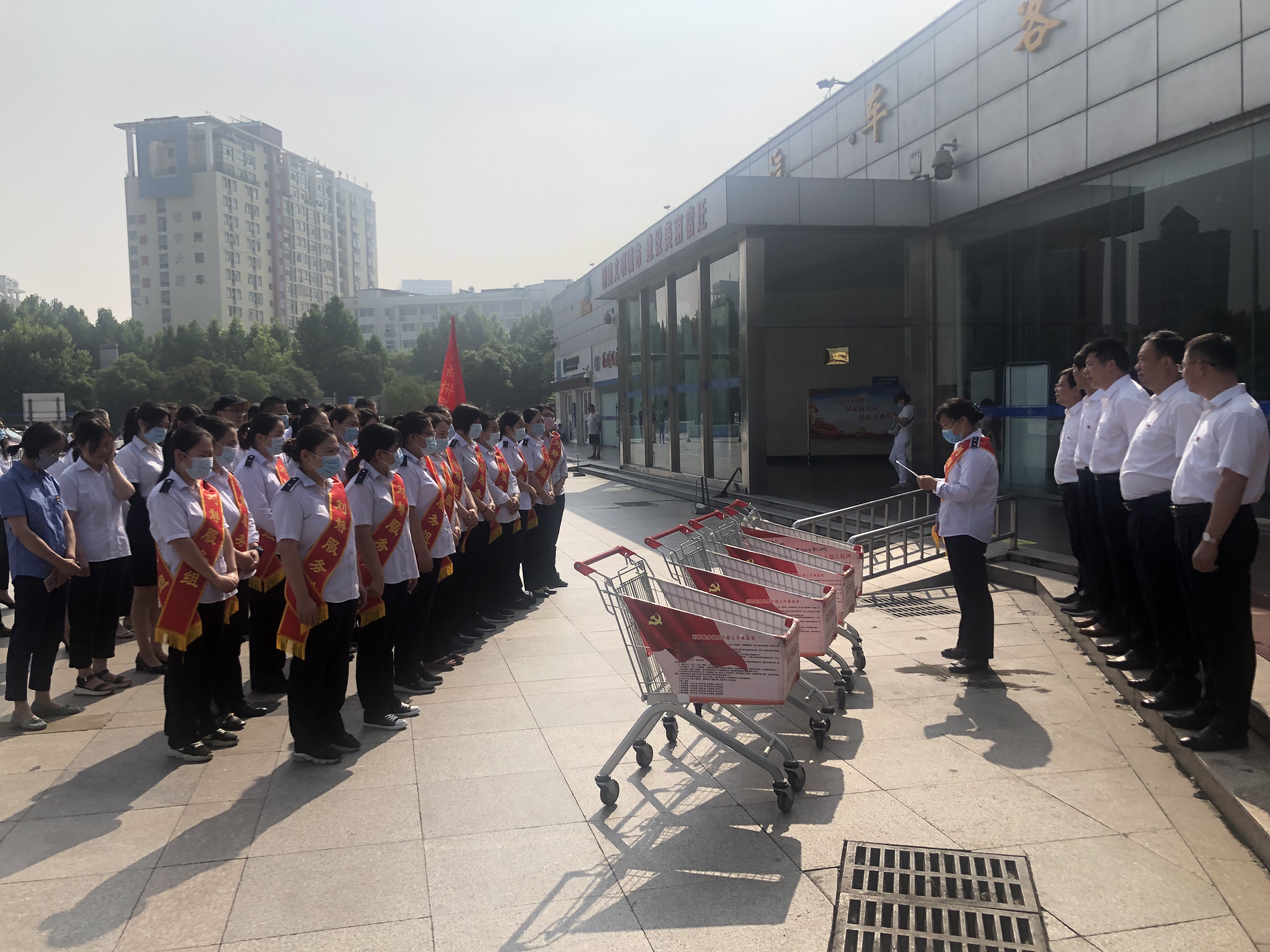 7月19日,公交公司黨總支組織50余名黨員赴泗洪縣大王莊黨性教育基地,以敬獻花籃、重溫入黨誓詞、現(xiàn)場參觀教學等方式開展 “黨旗領航、安全在心”主題黨日活動。