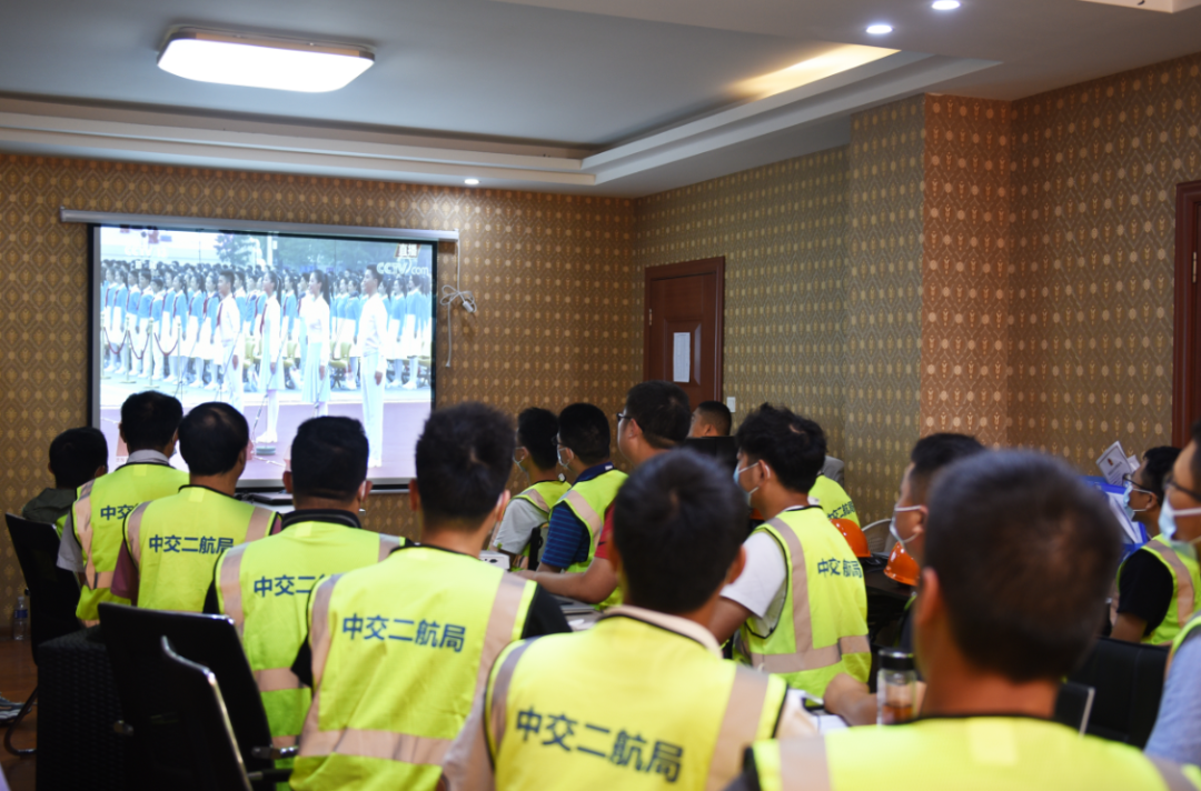 ▲北京路快速化改造工程項目部人員收看大會現(xiàn)場直播