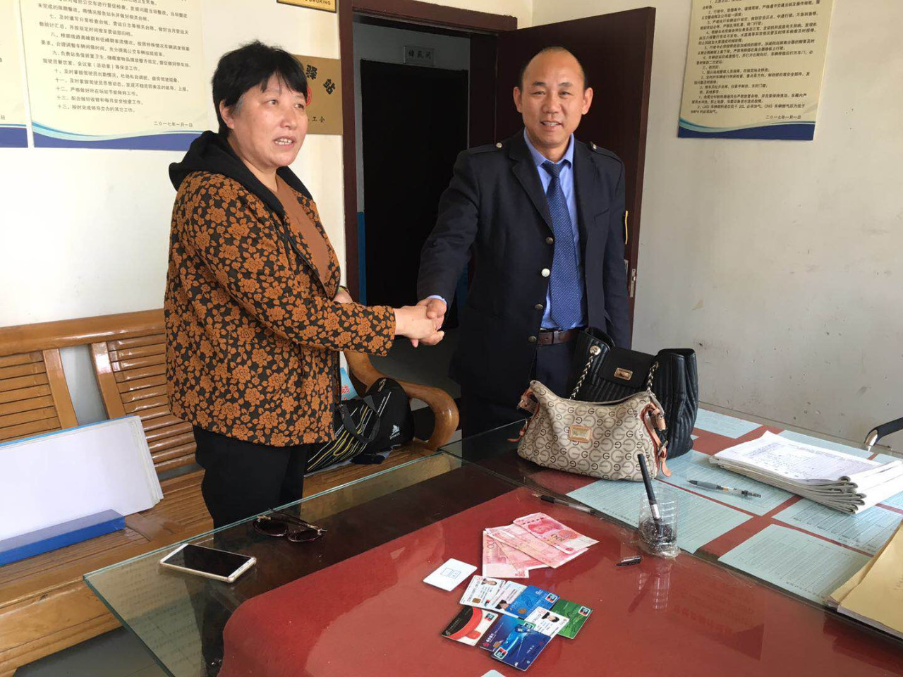 據(jù)了解,王女士從項里小區(qū)站乘坐蘇N11520公交車到達紅星美凱龍時,因疏忽大意將隨身攜帶的手提包落在車內(nèi),包里有現(xiàn)金1500元、身份證、銀行卡數(shù)張。察覺到包丟了的王女士萬分著急,通過撥打義烏商貿(mào)城站務(wù)室電話后得知落在車?yán)锏陌驯获{駛員董師傅撿到并交到站務(wù)室。