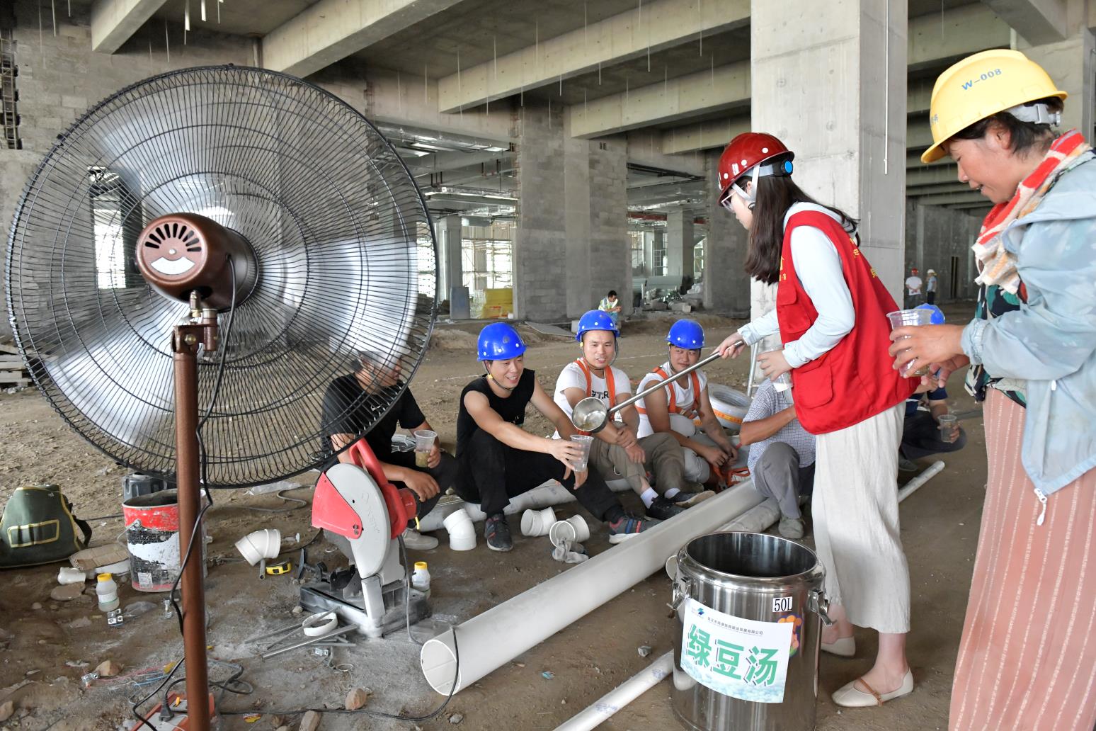 7月30日上午,高鐵公司組織開展“戰(zhàn)高溫,送清涼”慰問(wèn)活動(dòng)。公司黨員、職工代表深入上海路(高鐵站連接線)和綜合客運(yùn)樞紐項(xiàng)目施工現(xiàn)場(chǎng),給在高溫酷暑中辛勤工作的一線員工們送去解暑綠豆湯。同時(shí),給換乘中心內(nèi)裝修施工的工友們送去風(fēng)扇,讓大家在休息之余,能夠感受到一絲涼爽。