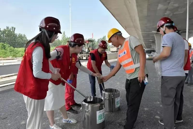 吃,一天三頓都是四菜一湯,盡量頓頓不重樣。一線建設(shè)人員忙的時(shí)候,早餐、中餐、晚餐以及夜宵,頓頓用飯盒裝好,送到工人手中。冬天,工人頂著寒風(fēng)施工,他們主動(dòng)送去姜湯;夏天酷暑難熬,又送去綠豆湯、礦泉水。