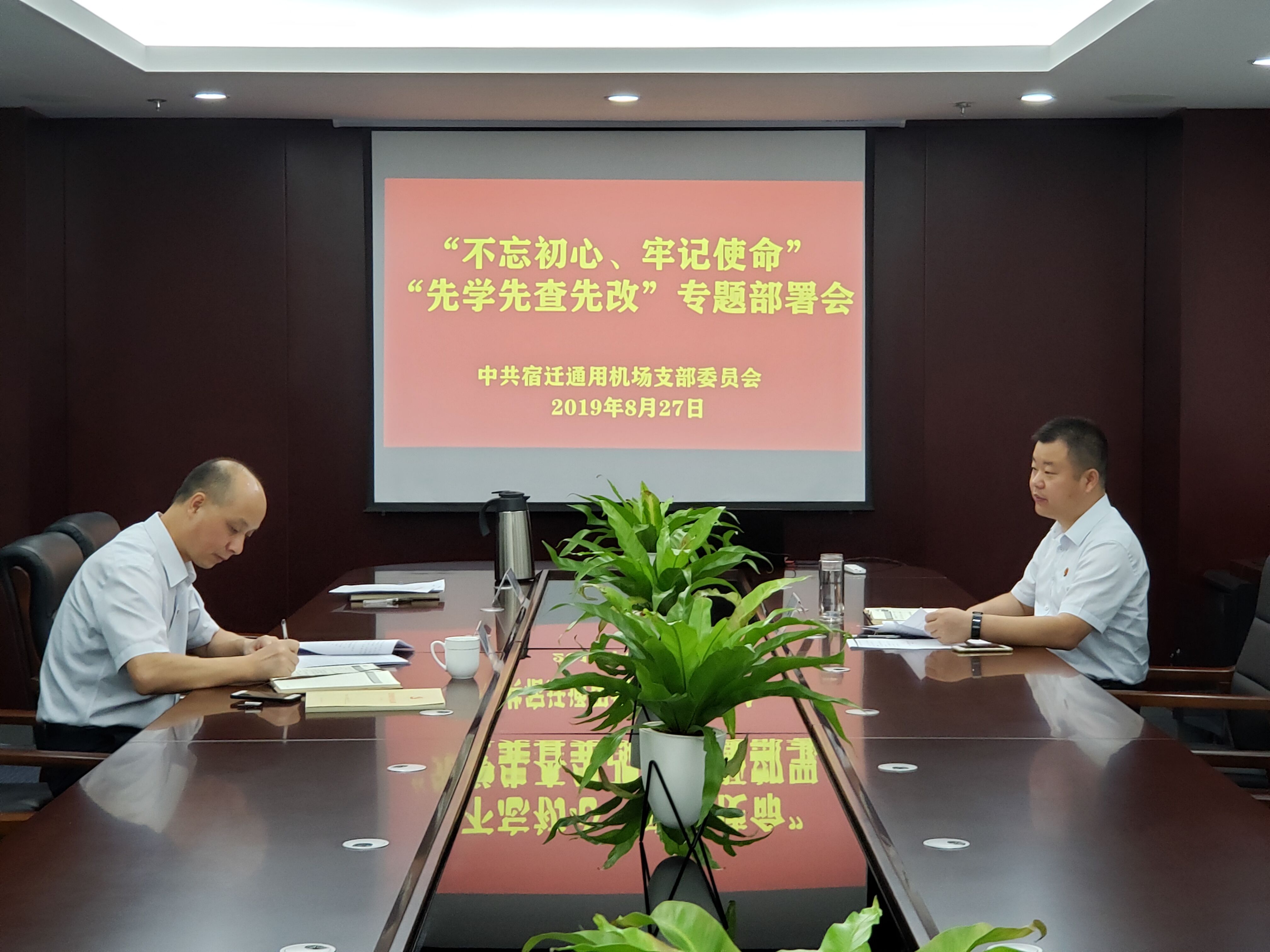 為貫徹落實(shí)《關(guān)于在第二批“不忘初心、牢記使命”主題教育前開展“先學(xué)先查先改”活動的通知》精神,宿遷市洋河通用機(jī)場公司黨支部于8月27日上午, 組織召開“不忘初心、牢記使命”主題教育 “先學(xué)先查先改”工作專題部署會。