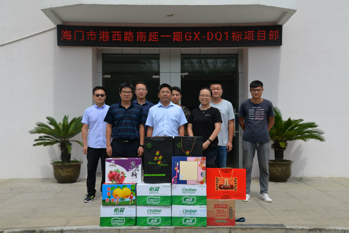 2019年9月11日,適逢中秋佳節(jié)前夕,公司黨總支組織工會等部門趕赴海門市,深切慰問仍奮斗在海門港西路大橋項目一線的公司員工,并給他們送去月餅、水果等節(jié)日禮品以及公司衷心的節(jié)日問候。