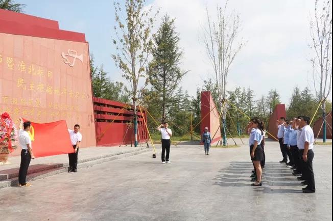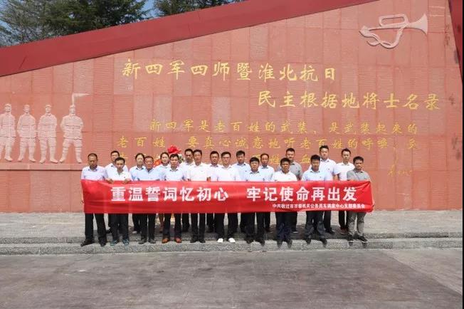 伴隨著嘹亮的軍歌,大家踏上了這片被譽(yù)為“蘇皖紅土地,淮北小延安”的紅色土地。在新四軍四師暨淮北抗日民主根據(jù)地將士名錄墻前,全體黨員列隊(duì)肅立,鞠躬默哀,向革命先輩敬獻(xiàn)花籃。隨后,黨員同志們面對黨旗,重溫入黨誓詞,用錚錚誓言詮釋自己不忘初心,牢記使命的堅(jiān)定信念。
