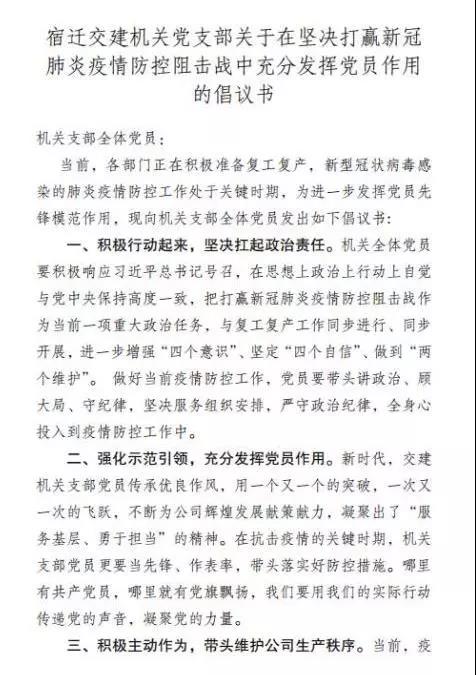會(huì)上,機(jī)關(guān)支部發(fā)出《關(guān)于在堅(jiān)決打贏新冠肺炎疫情防控阻擊戰(zhàn)中充分發(fā)揮黨員作用的倡議書(shū)》,號(hào)召支部全體黨員要積極行動(dòng)起來(lái),堅(jiān)決扛起政治責(zé)任;要強(qiáng)化示范引領(lǐng),充分發(fā)揮黨員作用;要積極主動(dòng)作為,帶頭維護(hù)公司生產(chǎn)秩序。