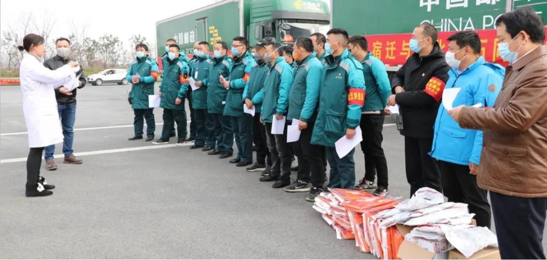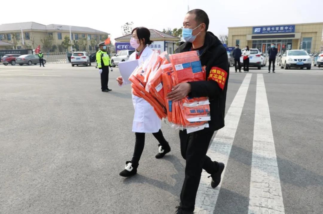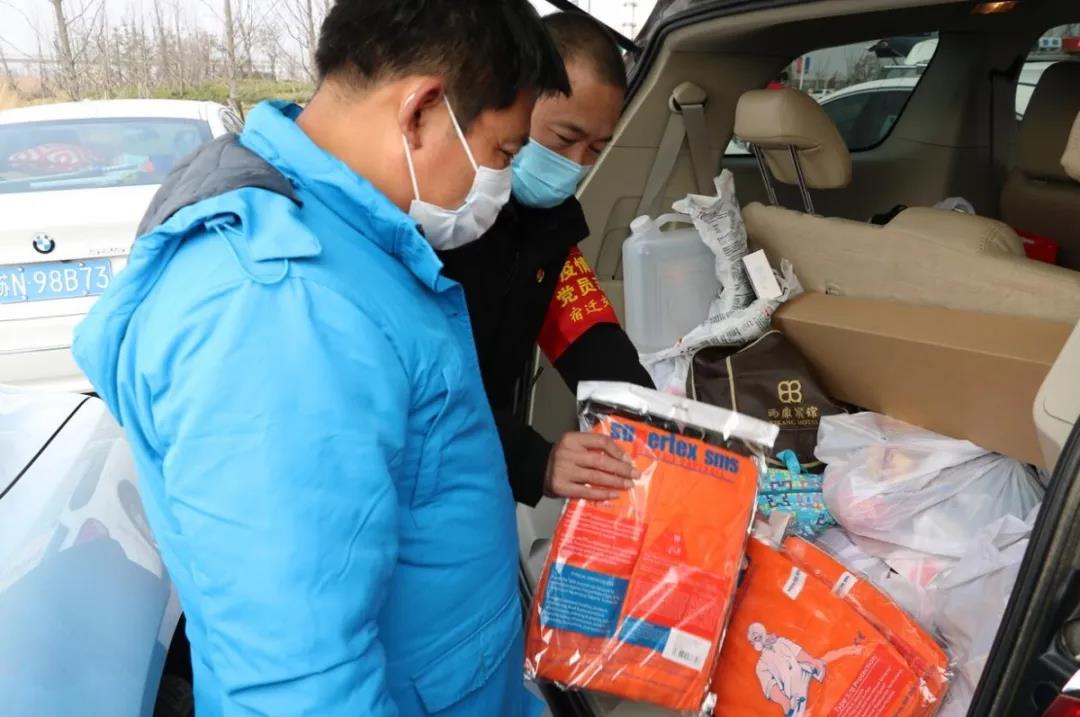 下午13時,兩位同志抵達宿遷高速出口,統(tǒng)一學習防護用品穿戴方法,同時配合用車單位完成防護物資發(fā)放工作。