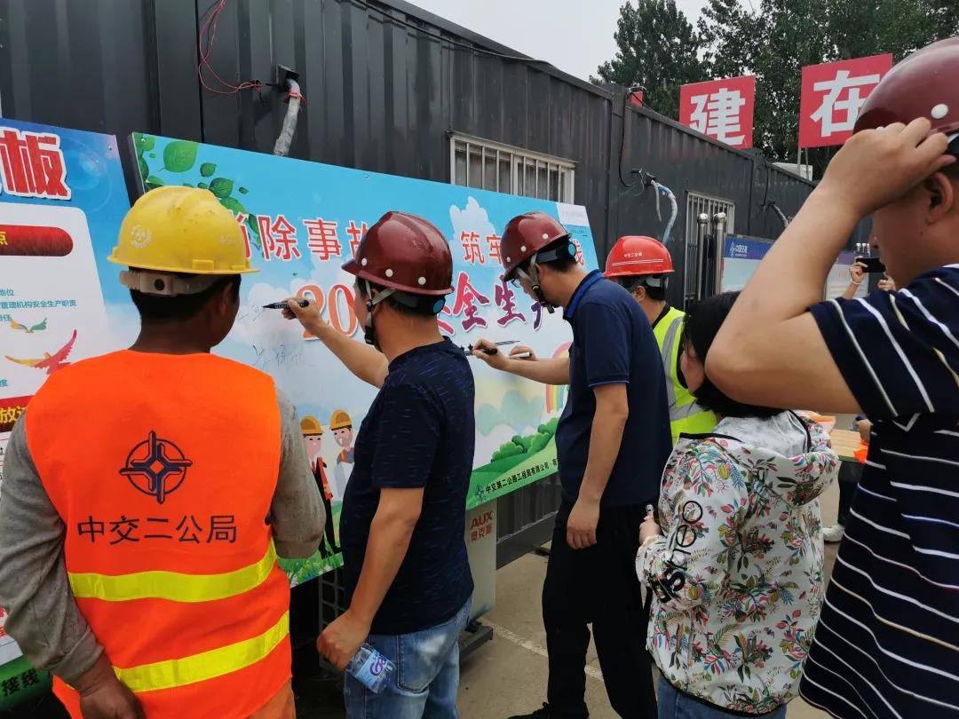 儀式上,項(xiàng)目安全總監(jiān)宣讀了2020年“安全生產(chǎn)月”活動(dòng)方案,全體人員共同觀看了《消除事故隱患 筑牢安全防線》主題宣傳片,并在“消除事故隱患 筑牢安全防線”主題展板上簽字。