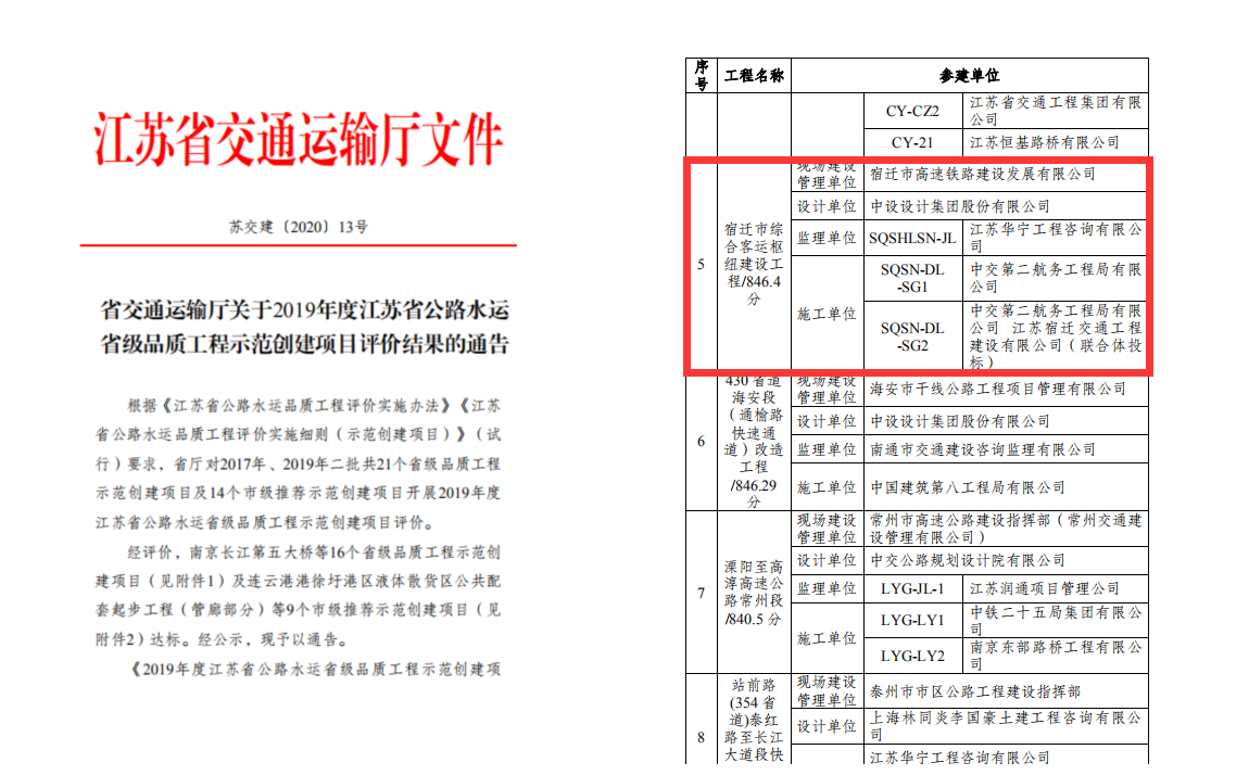 此次江蘇省有9個(gè)市級推薦示范創(chuàng)建項(xiàng)目達(dá)標(biāo),由市交通集團(tuán)承建的宿遷市綜合客運(yùn)樞紐建設(shè)工程以846.4分榮獲第五名。