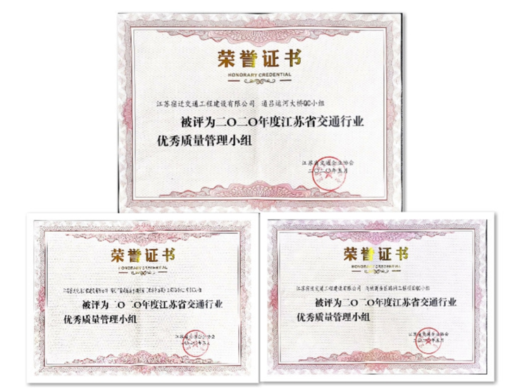 與此同時(shí),該公司各項(xiàng)目部繼續(xù)保持安全生產(chǎn)良好態(tài)勢(shì),堅(jiān)持高標(biāo)準(zhǔn)、高要求、高品質(zhì)的精細(xì)化管理。市綜合客運(yùn)樞紐建設(shè)工程SG2項(xiàng)目被評(píng)為省級(jí)優(yōu)質(zhì)工程,市高鐵商務(wù)區(qū)路網(wǎng)工程等4個(gè)項(xiàng)目分別獲評(píng)2019年度江蘇省公路水運(yùn)工程平安工地建設(shè)省級(jí)“示范工地”,市高鐵商務(wù)區(qū)路網(wǎng)工程項(xiàng)目、宿城區(qū)成子湖大道、通呂運(yùn)河大橋三個(gè)項(xiàng)目小組被評(píng)為省交通行業(yè)優(yōu)秀質(zhì)量管理小組……