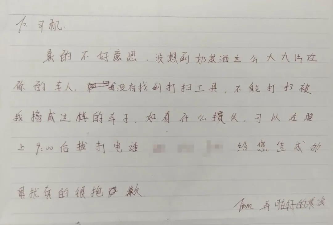 這封信筆跡稚嫩,卻無(wú)比真誠(chéng)。原來是當(dāng)天早上上學(xué)高峰期,一名12歲的女孩不小心把奶茶灑到了公交車上。“早上到鐘吾國(guó)際學(xué)校站臺(tái)時(shí),一個(gè)小女孩跑到我面前跟我說叔叔對(duì)不起,我不小心把車弄臟了。我沒多想就說不礙事的,你快上學(xué)去吧。到站后才發(fā)現(xiàn)這張暖人心的字條。”季輝回憶時(shí)說道。“這孩子不僅誠(chéng)實(shí),而且還勇敢、有擔(dān)當(dāng)。在沒有被別人發(fā)現(xiàn)的情況下,能主動(dòng)站出來承認(rèn)過失,很多大人都不一定能做到。”