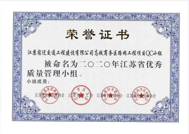 近日,宿遷交建的“高鐵商務(wù)區(qū)路網(wǎng)工程項(xiàng)目QC小組”被江蘇省質(zhì)量管理協(xié)會(huì)、江蘇省總工會(huì)、江蘇省婦女聯(lián)合會(huì)、江蘇省科學(xué)技術(shù)協(xié)會(huì)授予“2020年度江蘇省優(yōu)秀質(zhì)量管理小組”稱號(hào)。同時(shí),該課題還被江蘇省質(zhì)量管理協(xié)會(huì)確認(rèn)為江蘇省優(yōu)秀質(zhì)量管理小組活動(dòng)三級(jí)技術(shù)成果。