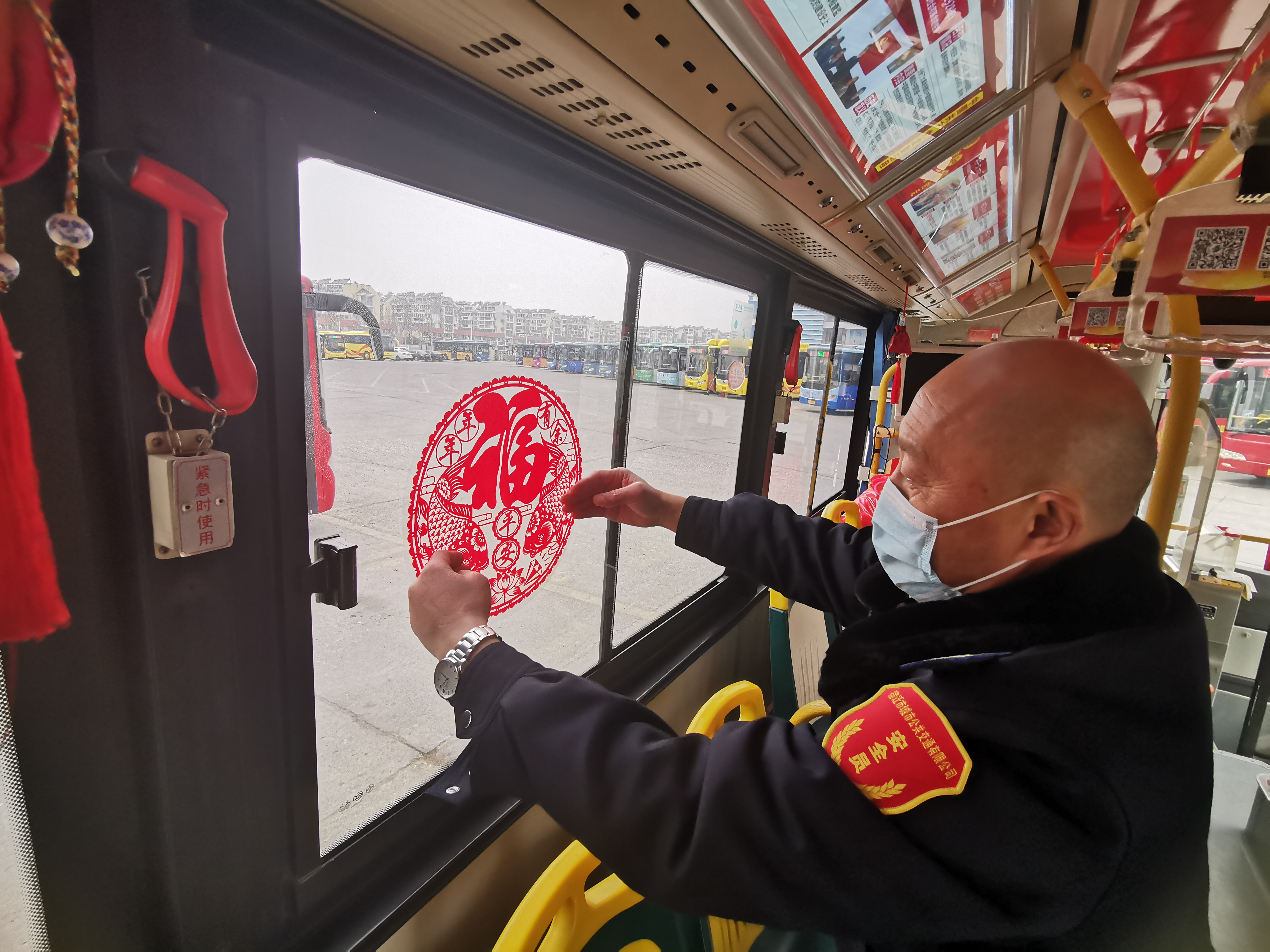 隨著日歷的翻頁(yè),年味越來(lái)越濃。1月28日,公交公司304路“信仰之路”紅色主題車(chē)的駕駛員們?cè)缭鐏?lái)到調(diào)度站開(kāi)始布置車(chē)廂:將車(chē)輛里外仔細(xì)打掃干凈,車(chē)窗上貼著喜慶的福字和窗花,扶手上懸掛著吉祥的紅燈籠,裝飾掛件與紅色主題車(chē)相映成趣,濃濃的年味頓時(shí)“洋溢”出來(lái)。