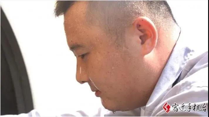 烈日下頂著近四十度的高溫,為車輛做保養(yǎng),卸輪胎,換剎車油,豆大的汗珠順著李征臉頰流下,來不及用沾滿油漬的雙手擦一擦,盡管這樣李征絲毫沒有一點馬虎。