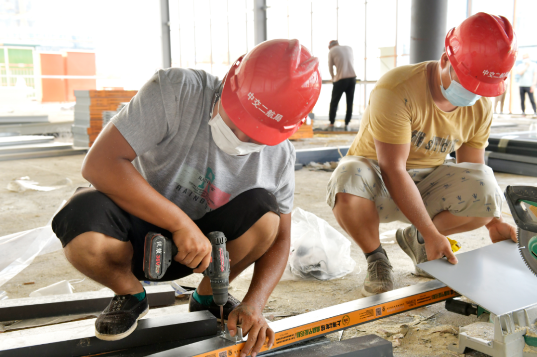 廣大建設(shè)者頭頂烈日、腳踏熱土