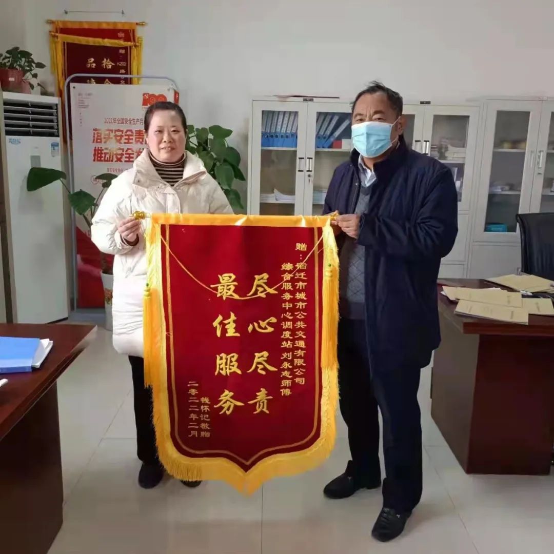 近日,市民錢先生將一面寫有“盡心盡責,最佳服務”的錦旗送到了公交公司綜合服務中心調(diào)度站,感謝K202路駕駛員劉永志三個月前的見義勇為、熱心相助。