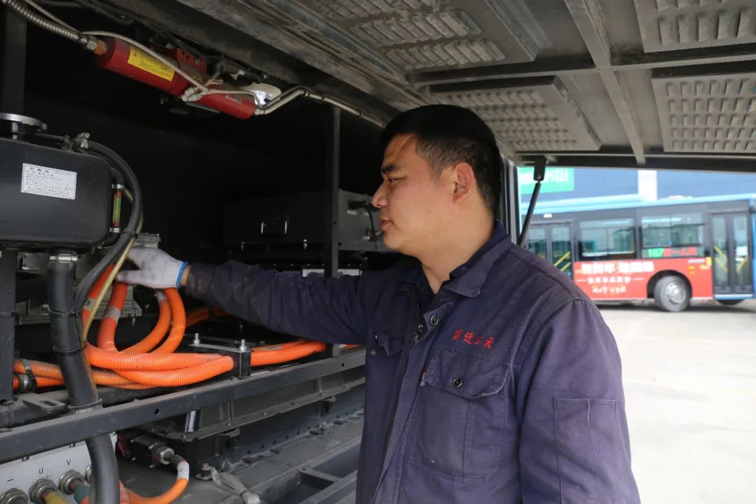 ??????? “公司采購的第一批純電動(dòng)新能源公交車到貨時(shí),我們都很懵,咱沒見過??!為了盡快摸清新車的工作原理,有效掌握維修重難點(diǎn),除了到廠家進(jìn)行專業(yè)學(xué)習(xí),向售后服務(wù)的師傅多請(qǐng)教外,我抓住一切機(jī)會(huì)多接觸新車,有空上手練、沒空多琢磨,一點(diǎn)一點(diǎn)攻克了純電動(dòng)公交車的維修難點(diǎn)??偨Y(jié)起來就四個(gè)字——膽大心細(xì)。”婁德高說。