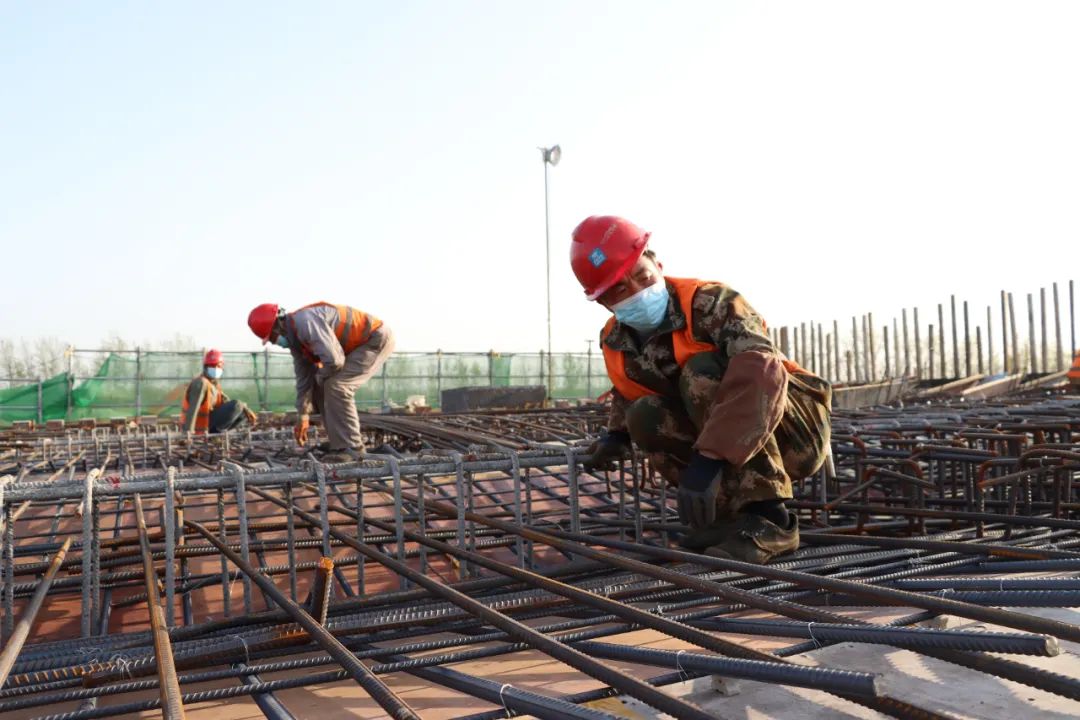 4月8日,宿遷市北京路快速化改造工程現(xiàn)場施工人員正在有條不紊地綁扎鋼筋、焊接、沖洗、安裝……復工生產(chǎn)平穩(wěn)有序推進。