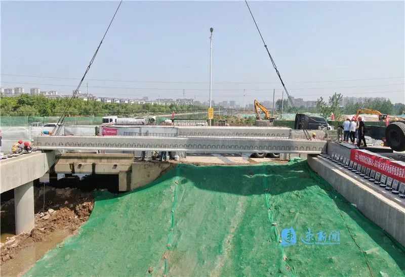 5月15日,北京路快速化改造工程1標段古黃河跨河橋梁成功完成首片板梁架設(shè),拉開了北京路項目建設(shè)新序幕。
