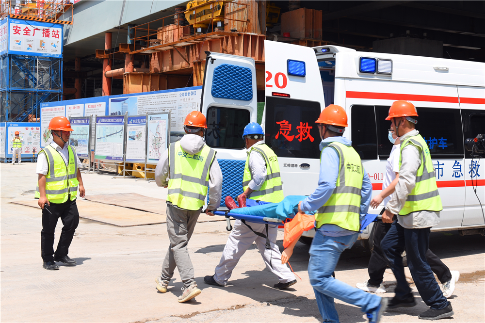 據悉,此次演練結合項目實際,以“在施工過程中,一位作業(yè)人員突發(fā)中暑,一位作業(yè)人員不慎從棧橋上跌入水中”為模擬事件背景,采用真人、實地、實戰(zhàn)模式,演練內容涉及人員中暑及落水事故的發(fā)現上報、預案啟動、現場搶險、醫(yī)療救援等內容,涵蓋了事故應急救援處置的各個環(huán)節(jié)。