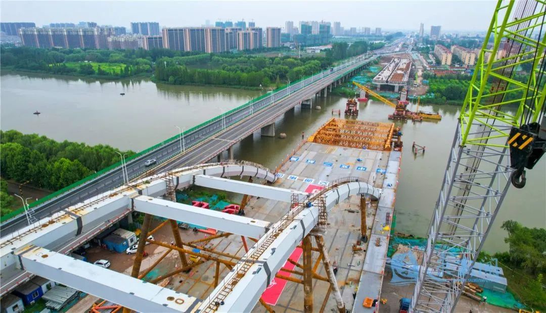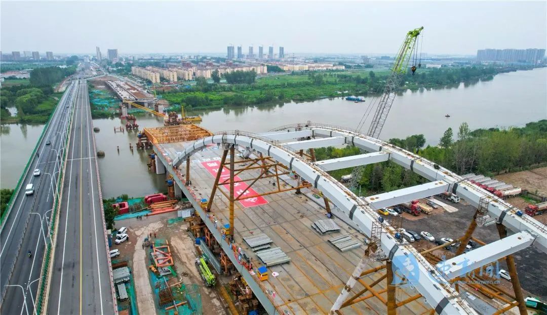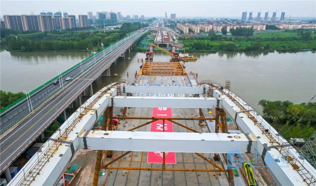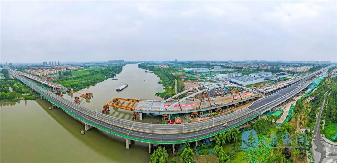 7月29日,宿遷市北京路快速化改造工程跨京杭運河特大橋開始第二輪頂推施工。