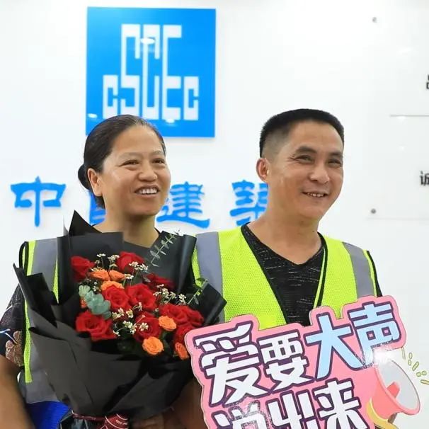 平時(shí)工地生活平淡,但通過(guò)這樣的活動(dòng),讓工友們能在繁忙之余感受到愛(ài)情的甜蜜和家庭的溫暖,在這樣的氛圍里,工友夫妻之間的感情還是透過(guò)一顰一笑展露無(wú)遺。真摯而幸福的笑容映襯著漂亮的花束,從工友夫妻的臉上蕩漾開(kāi)來(lái)。
