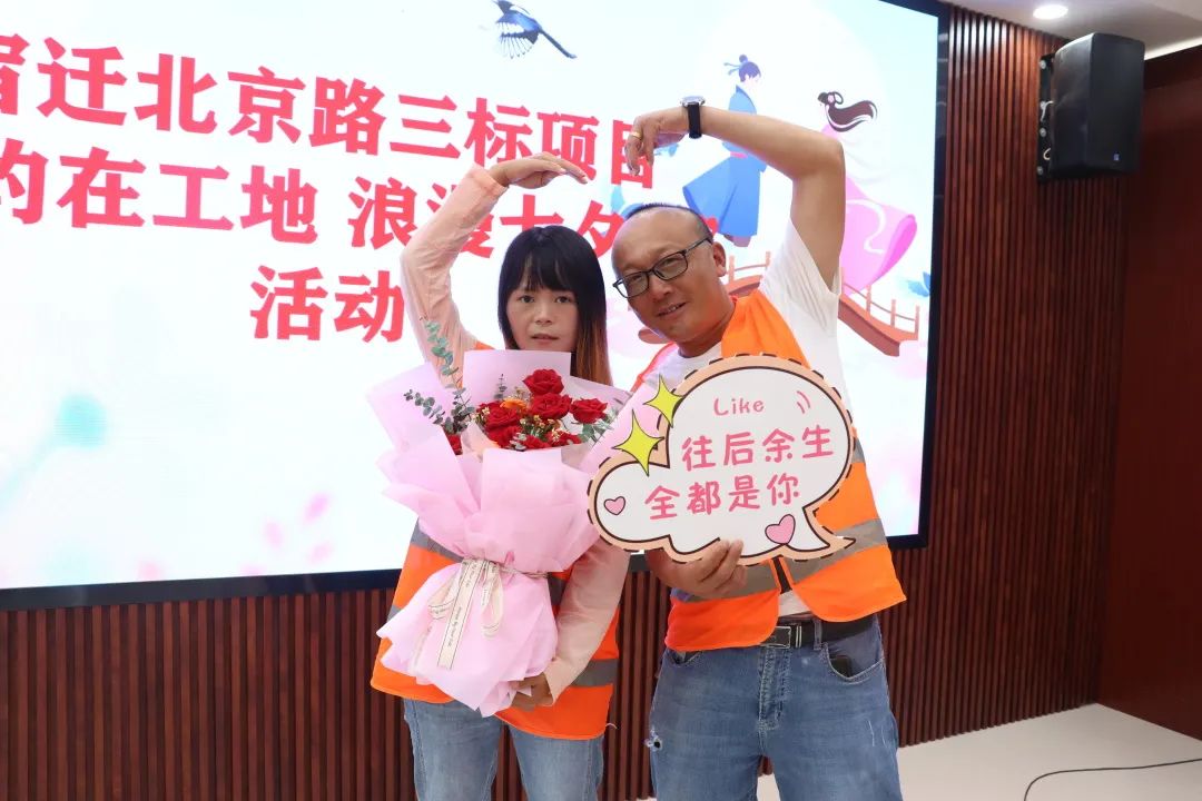 “項(xiàng)目在哪兒,家就在哪兒”是工地夫妻的真實(shí)寫(xiě)照。身上的CI服是最棒的“情侶裝”,工作、生活、春華秋月、四季冷暖彼此陪伴、攜手同行是工地夫妻最大的知足。北京路快速化改造3標(biāo)也是借助七夕這個(gè)特殊的日子,為項(xiàng)目部7對(duì)夫妻工友送上節(jié)日祝福。