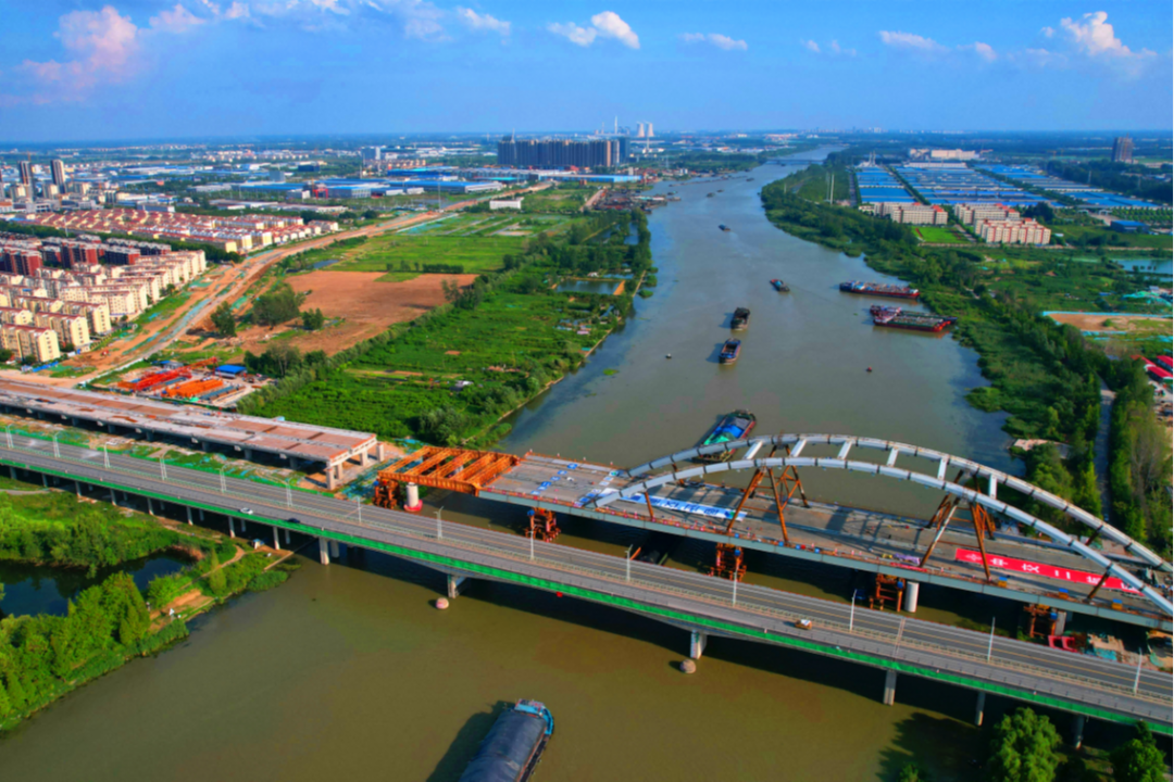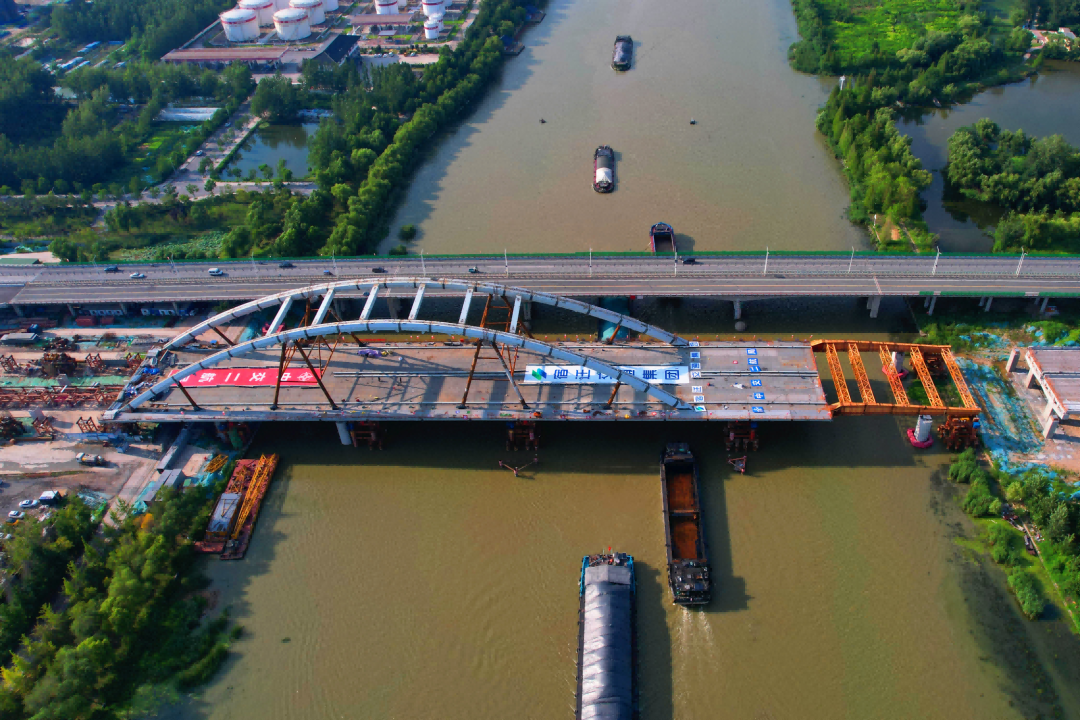 8月7日,北京路快速化改造工程的控制性工程——跨京杭運(yùn)河特大橋完成百米沖刺,梁拱整體順利頂推過(guò)河。據(jù)悉,第二次頂推于7月29日正式啟動(dòng),共歷時(shí)10天,整體推進(jìn)137米,累計(jì)頂推216米,頂推進(jìn)度完成76.5%。