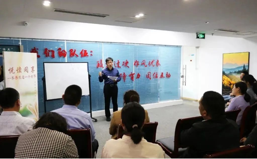 活動中,大家熱情分享了近期的閱讀心得,現場氛圍輕松,書香濃郁。王雨用一則生動有趣的小故事《鑰匙與鎖》告訴我們團隊協作,合作共贏的重要性;周利則用《減法》里的兩個案例讓我們認識到了在生活中學會“減法”的力量;張紅丹和陳沖帶領大家分別認識了《月亮與六便士》中選擇望向遠方月亮的查爾斯以及《活著》里一生悲喜交錯的徐福貴;柏靜靜分享了《漁夫和他的妻子》,用一篇童話故事揭示了人的貪婪本性,孫囝囝則通過《如何說孩子才會聽,怎么聽孩子才肯說》這本書,和大家分享了與孩子溝通的常見誤區(qū)以及相應的溝通技巧?;顒幼詈?,恒通租賃總經理盧裕松和大家分享了《西游記》中第21回“掃塔辨奇冤”的精彩內容,通過看似簡單的唐僧掃塔,結合實際,引領大家共同探究思考,最終總結分享了“起點低、當下凈、回頭臟、平常道”蘊含人生哲理的12字智慧,引發(fā)大家思考。