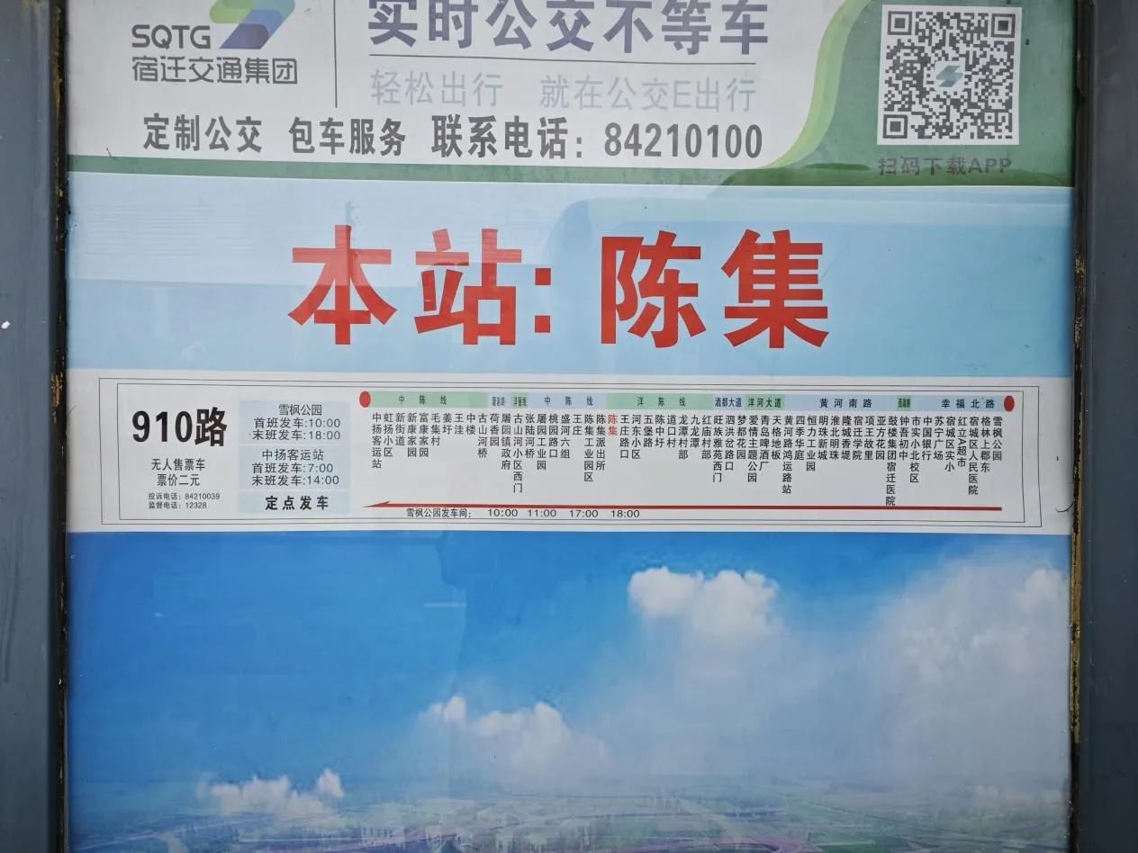 為進(jìn)一步優(yōu)化市區(qū)公交線網(wǎng)結(jié)構(gòu),切實解決城鄉(xiāng)居民出行需求,自今年8月28日起,宿城區(qū)陳集鎮(zhèn)、屠園鄉(xiāng)、中揚(yáng)鎮(zhèn)這三個鄉(xiāng)鎮(zhèn)開通了直達(dá)市區(qū)定時公交910路(雪楓公園公交樞紐站至中揚(yáng)客運(yùn)站),沿線站點(diǎn)均可2元公交直達(dá)。