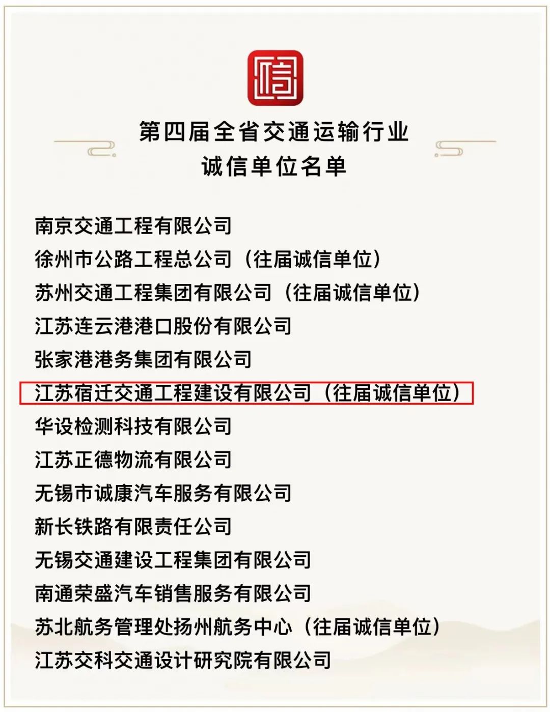 【宿遷交建】再獲第四屆全省交通運輸行業(yè)誠信單位