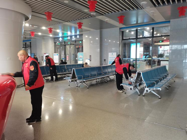 與此同時,在高鐵公交樞紐站,身穿紅色馬甲的志愿者們分工明確、不停忙碌,有的負責維護現場秩序,有的則熱心導乘、幫扶老弱。待人潮散去后,他們又一起將候車區(qū)座椅擦拭干凈。他們的用心服務得到了來往乘客的一致稱贊,在志愿服務站穿梭的“志愿紅”成為一道亮麗的風景線。
