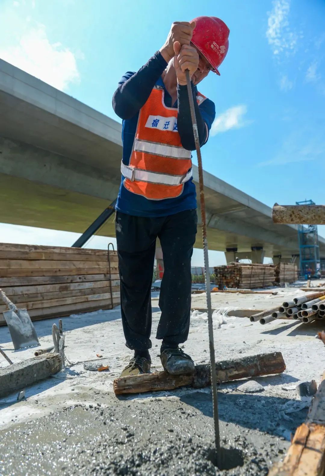 建設(shè)者不懼高溫“烤”驗(yàn),加緊施工作業(yè)