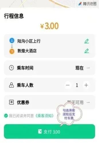 “‘網(wǎng)約公交’運營時間為上午7點至下午6點,票價采用‘一票制’,3元/人次。我們鼓勵乘客進行線上支付,先付后乘。需要注意的是,乘坐‘網(wǎng)約公交’的群眾是無法享受免費乘車或刷卡優(yōu)惠等政策的。”