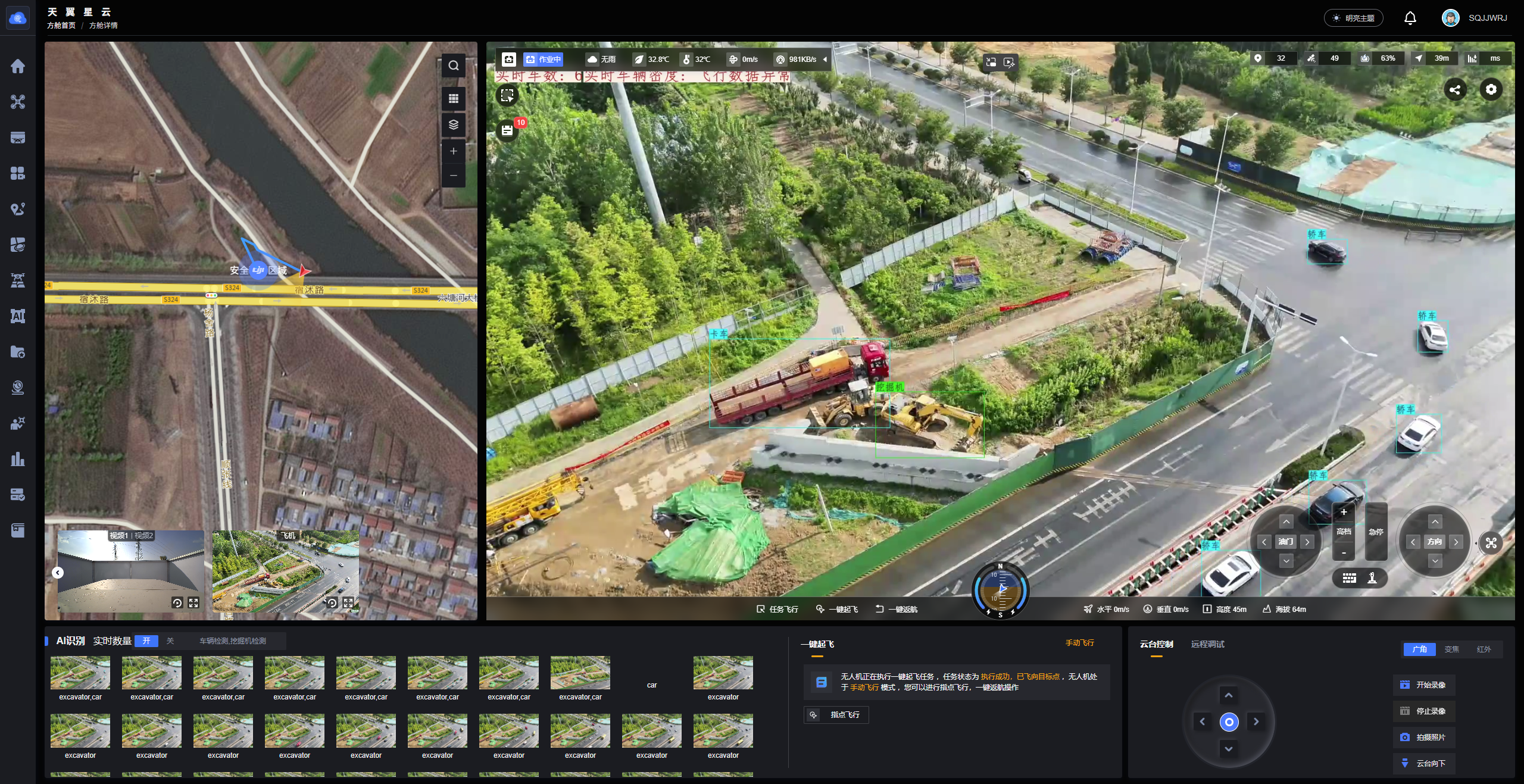 以宿遷大道快速化改造工程3標(biāo)為例,在某個(gè)普通的清晨,一架無人機(jī)正常起飛巡檢,它一路攀升到60米高空,項(xiàng)目施工進(jìn)度、安全生產(chǎn)等情況全都被高清鏡頭“收入囊中”,化作實(shí)時(shí)數(shù)據(jù)流,飛速傳輸?shù)绞屑?jí)飛控平臺(tái)里,利用內(nèi)置AI算法自動(dòng)識(shí)別隱患行為,并自動(dòng)標(biāo)記位置、推送預(yù)警、督促整改,形成全鏈條管理閉環(huán)?,F(xiàn)在15分鐘就能完成6公里路段的高效巡航,效率比人工快了30倍。
