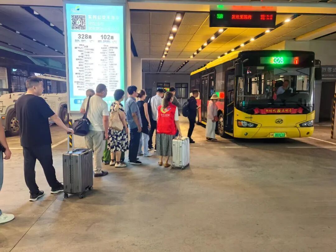 青年志愿者們也成為節(jié)日里的“溫暖使者”。他們身著紅色志愿服,活躍在各大公交站點。在高鐵公交樞紐站,志愿者們主動幫攜帶大件行李的乘客搬運行李,引導(dǎo)他們快速找到乘車線路。