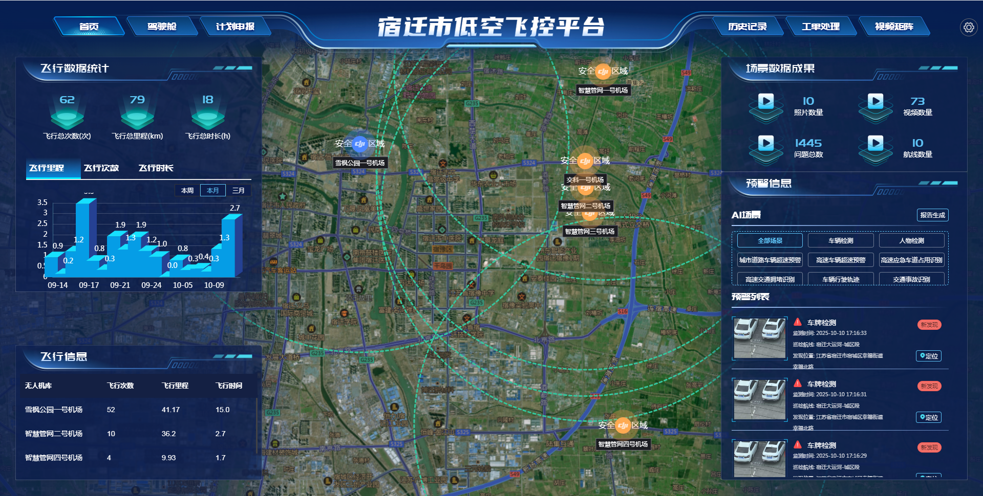 完成無人機飛控平臺、低空飛行服務(wù)平臺部署,實現(xiàn)了空域申報、航線規(guī)劃、動態(tài)監(jiān)管“一網(wǎng)通辦”。