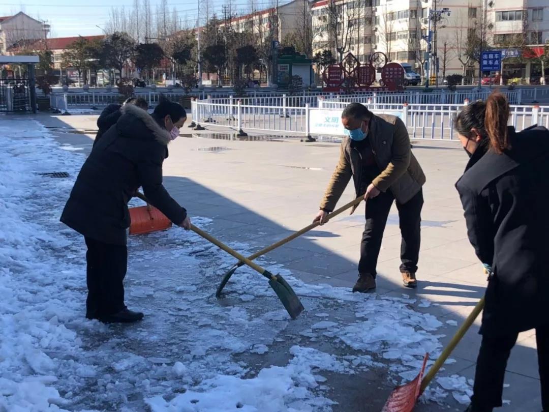 “受冷空氣影響,雨雪、寒潮、大風(fēng)天氣同時到訪宿遷,請黨員先鋒隊帶頭做好惡劣天氣防控工作。”面對突如其來的惡劣天氣,通湖物流園黨支部立即行動,做好除雪戰(zhàn)“疫”。