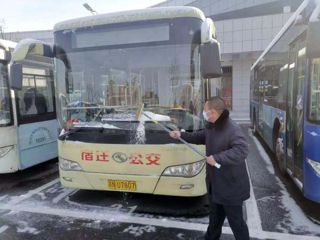 為有效應(yīng)對惡劣天氣,確保公交車正常運(yùn)營,公交公司根據(jù)氣象部門預(yù)報提前準(zhǔn)備,在微信工作群里及時發(fā)布雪情信息,要求各站嚴(yán)格防范。