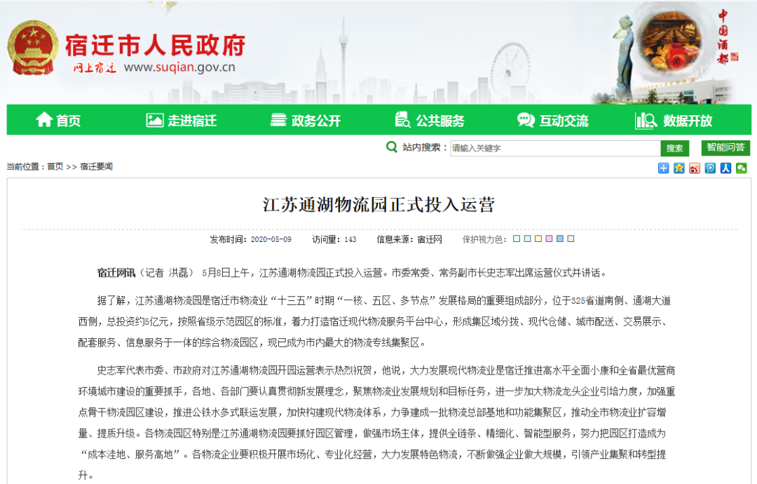 近日,《宿遷日報(bào)》《宿遷新聞》《政務(wù)時(shí)空》等市級主流媒體、網(wǎng)上宿遷等政務(wù)網(wǎng)站、宿遷論壇等自媒體以及羅戈網(wǎng)、中國智慧物流平臺等物流行業(yè)媒體紛紛聚焦江蘇通湖物流園開園運(yùn)營。