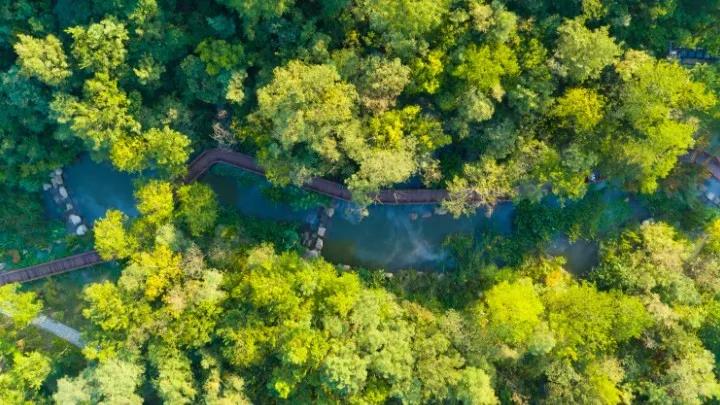12. 7平方公里的公園內(nèi),樹木古樸蔥蘢,蓬勃參天,森林覆蓋率達(dá)到98%,負(fù)氧離子含量高達(dá)2萬每立方厘米,遠(yuǎn)超一般的公園和城區(qū)。獨一無二的“衲田花海”,總面積2220畝,由612塊花田“ 縫補”拼接而成,融合了北方旱梯田的雄渾和南方水梯田的俊秀,與僧人袈裟異曲同工,兼具納祥聚福之意,樸質(zhì)熠熠生輝。