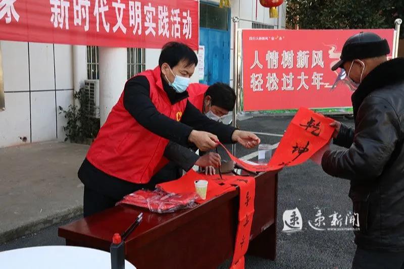 泗陽縣臨河鎮(zhèn)書法志愿者服務(wù)隊(duì)協(xié)辦的身邊好人送“新風(fēng)”義務(wù)書寫春聯(lián)活動;