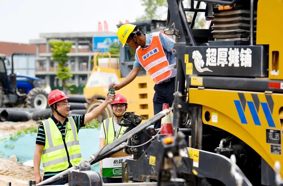 周大松迅速調(diào)整施工計劃,“見縫插針”——前面路基鋪設(shè)好一段,他們就跟上去攤鋪一段路面。