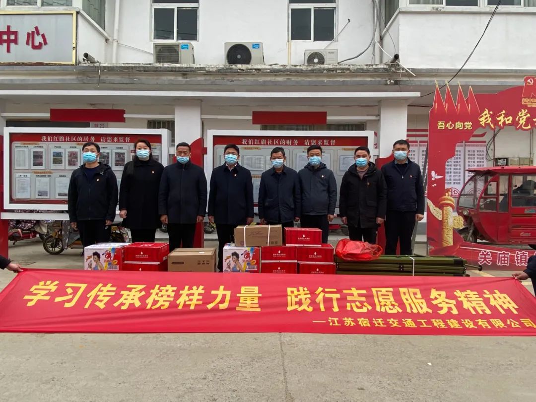 ??????? 期間,宿遷交建黨總支積極主動對接共建社區(qū)——宿豫區(qū)關(guān)廟鎮(zhèn)紅旗社區(qū)黨支部,在該支部的統(tǒng)一安排下,黨員志愿者挺身而出、沖鋒在前,為結(jié)對社區(qū)送去1200支口罩、4箱84消毒液、10箱純凈水等防疫物資,積極幫助社區(qū)工作者開展體溫測量、物資分送等志愿服務(wù)工作,聯(lián)手筑牢疫情防控“紅色堡壘”。