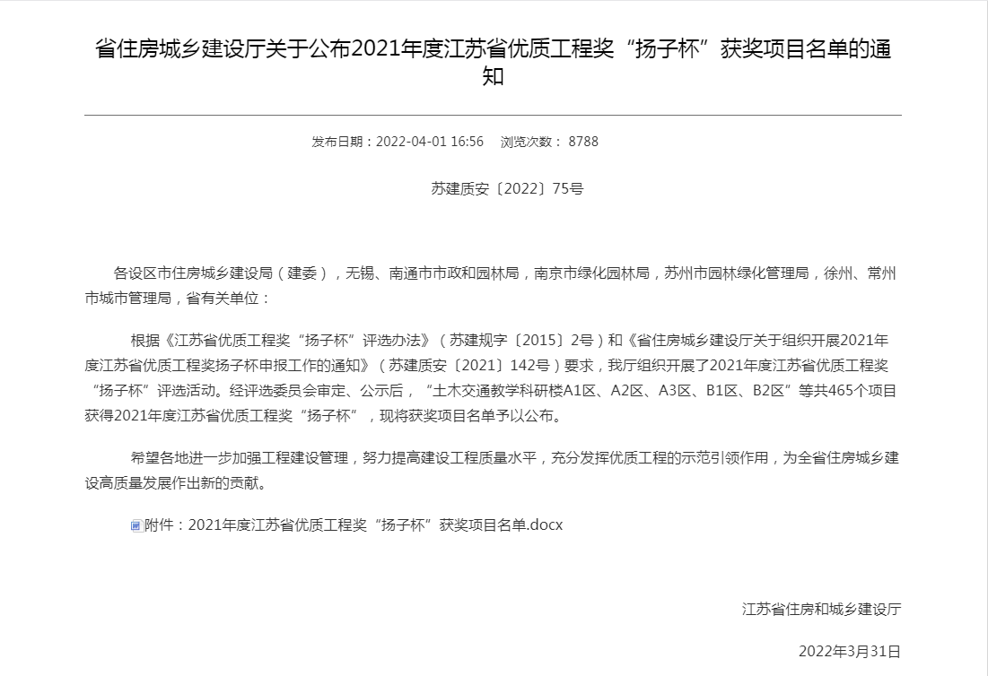 近日,省住房和城鄉(xiāng)建設廳公布了2021年度江蘇省優(yōu)質(zhì)工程獎“揚子杯”獲獎項目名單,其中,宿遷交通集團代建的江蘇通湖物流園一期配載中心工程、宿遷市綜合客運樞紐建設工程景觀綠化施工項目名列其中,江蘇通湖物流園一期智能配載中心工程項目更是以宿遷市房建工程項目綜合評分第一名的好成績榮登榜首。