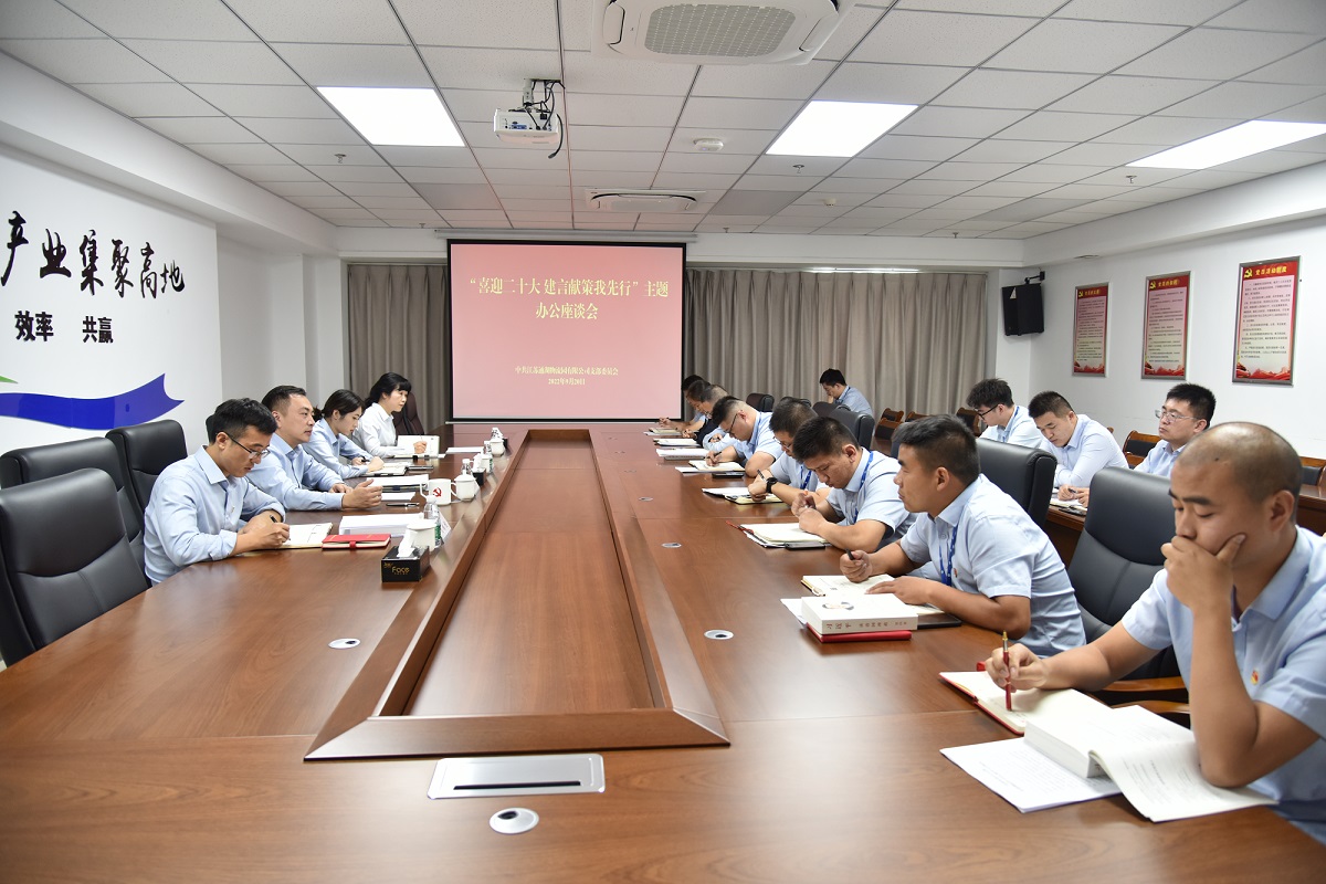 ??????? 9月20日上午,通湖物流園黨支部召開以“喜迎二十大·建言獻策我先行”為主題的黨日活動,活動邀請黨員、中層和群眾代表共同參加。