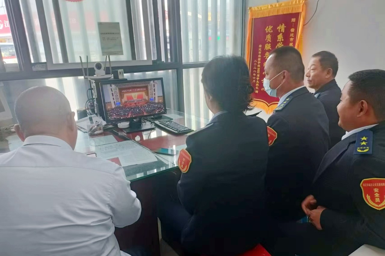 ▲停車(chē)場(chǎng)公司 組織收聽(tīng)收看黨的二十大開(kāi)幕會(huì)直播盛況