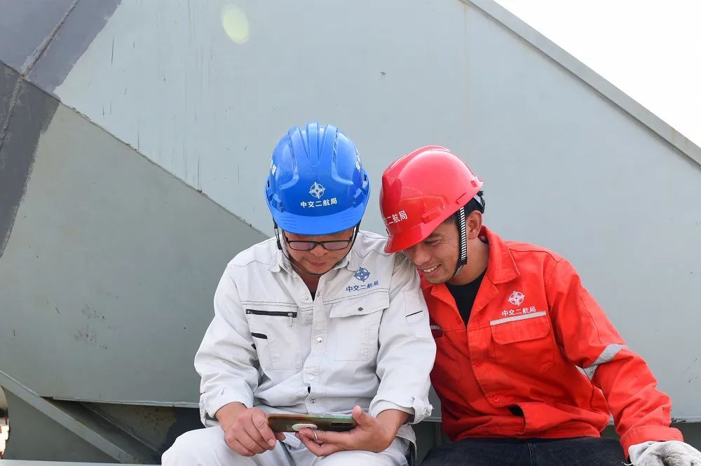 一線建設(shè)者利用休息時(shí)間學(xué)習(xí)黨的二十大精神