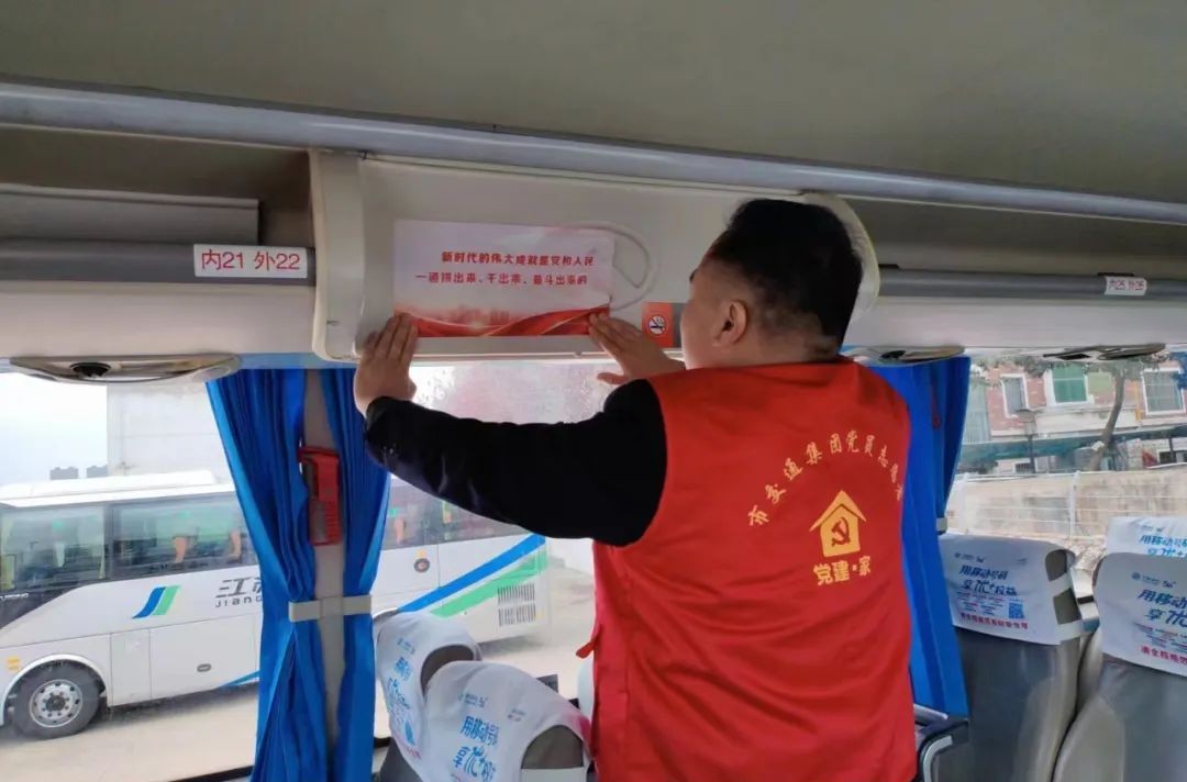 學(xué)習(xí)會上,全體人員集體觀看《領(lǐng)航:踔厲奮發(fā)》視頻,學(xué)習(xí)《習(xí)近平:為實現(xiàn)黨的二十大提出的目標任務(wù)而團結(jié)奮斗》等文件精神。會后,組織黨員在車內(nèi)張貼黨的二十大精神主題標語,“新時代的偉大成就是黨和人民一道拼出來、干出來、奮斗出來”等金句在車內(nèi)熠熠生輝,將深入學(xué)習(xí)宣傳貫徹黨的二十大精神以直觀、新穎的方式融入旅客出行環(huán)境中,把長途汽車打造為宣傳黨的二十大精神的流動課堂。