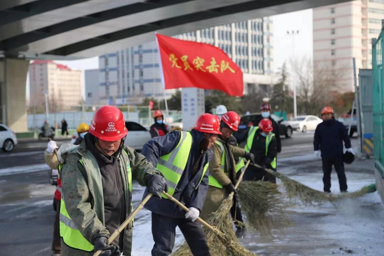 在迎賓大道二期快速化改造工程施工現(xiàn)場,高鐵公司調(diào)動95名施工管理人員與一線建設(shè)者,對迎賓大道與西湖路交匯處等14個路口撒布融雪劑,對結(jié)冰、積雪路段進行破冰清除。共出動高壓水車7臺、小貨運輸車3輛、皮卡車4臺、巡視車輛8臺,融雪劑1噸、融雪鹽3噸,目前各路口和易凍易滑路段均通行暢通。